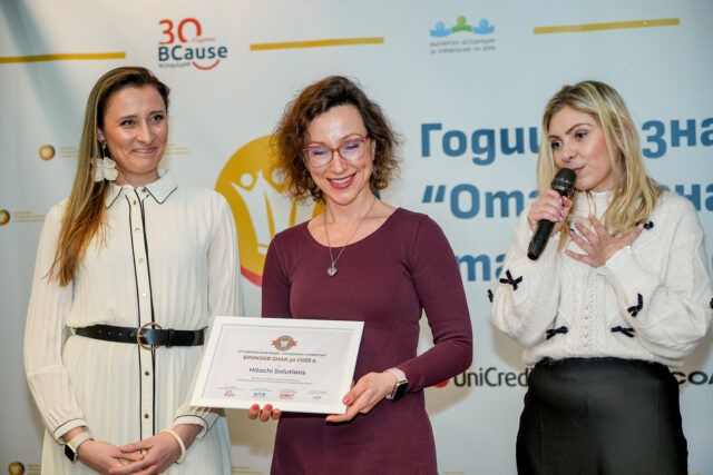 Hitachi Solutions Bulgaria бе отличена с бронзова награда на церемонията „Отговорна компания – отговорни служители“ в две поредни години. Конкурсът се организирана от Фондация BCause и ключови бизнес асоциации всяка пролет. Наградата се присъжда на организации, които активно насърчават дарителството и доброволчеството в рамките на своята работна култура.